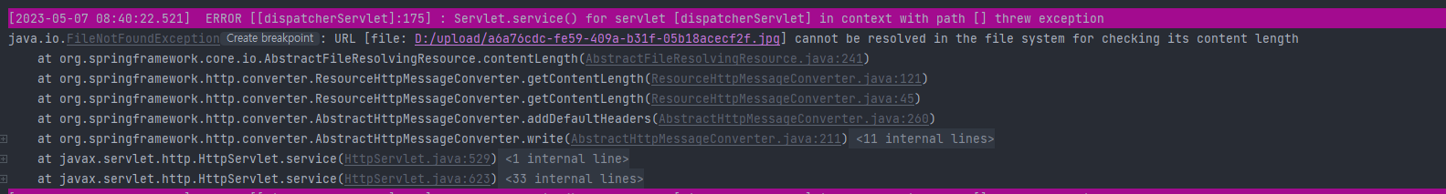 cannot be resolved in the file system for checking its content length 에러가 발생 했었다.