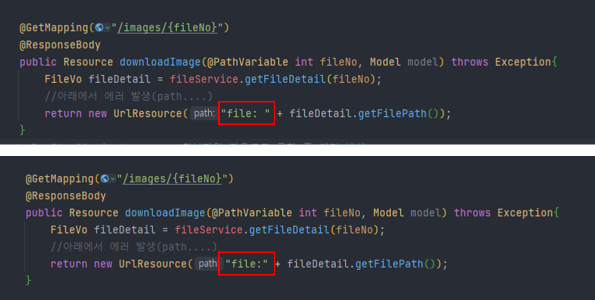 그런데 계속 UrlResource에서 경로를 찾지 못했다.