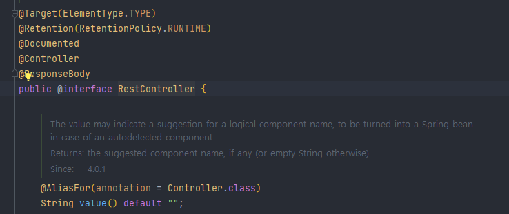 @RestController는 @Controller와 @ResponseBody가 합쳐진 애노테이션이다.