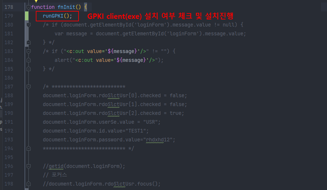 로그인화면 호출 후 GPKISecureWeb 설치 여부 체크하는지 확인