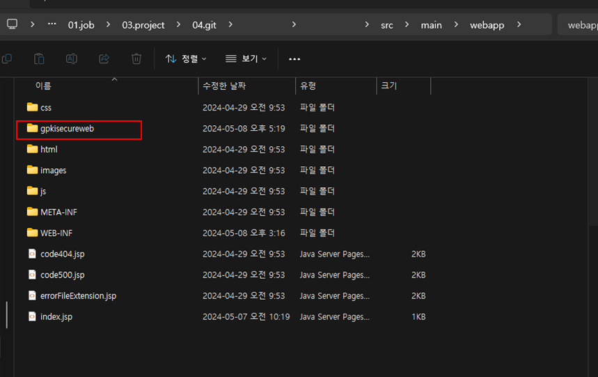 원하는 위치에 gpkiapi, gpkisecureweb폴더를 위치시킴